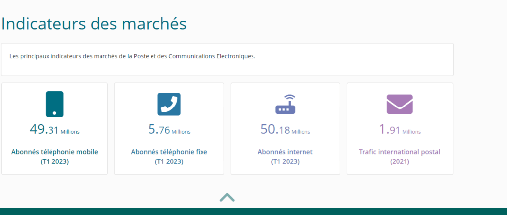 Pour ce qui est des abonnés mobiles, l’Autorité de régulation de la poste et des communications électroniques, note que sur les 50,18 millions d’abonnés à internet, 4,90 millions étaient abonnés à l’internet fixe et 45,29 millions à l’internet mobile.