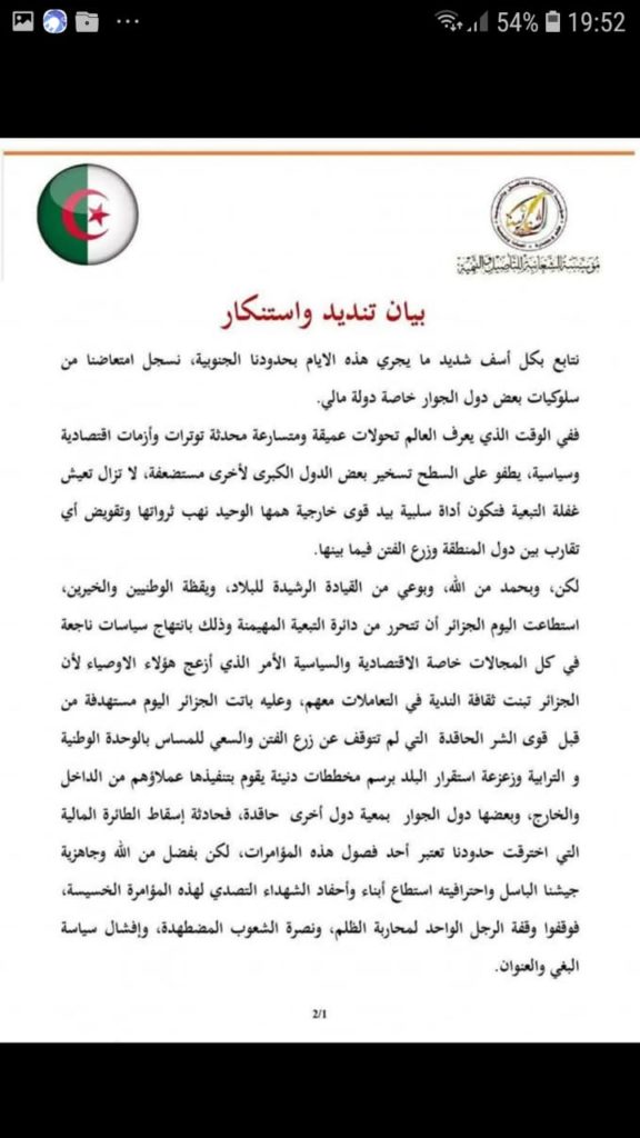 Face à la recrudescence des tensions entre l’Algérie et le Mali, notamment après la violation de espace aérien algérien par un avion malien, la Fondation Chaânba tire la sonnette d’alarme.