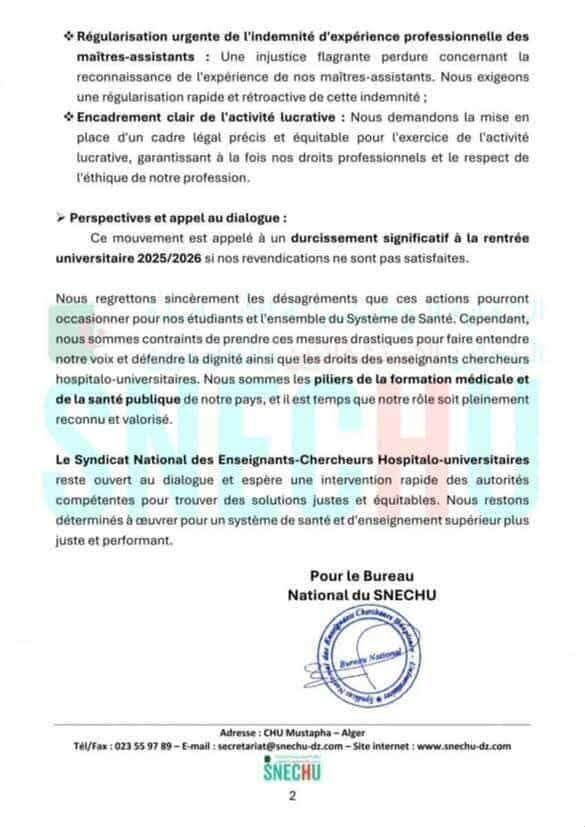 Le SNECHU exprime ses regrets quant aux perturbations que ces actions pourraient engendrer pour les étudiants et le système de santé. Cependant, le syndicat affirme que ces mesures sont « indispensables » pour défendre la dignité et les droits de ses membres, qu’il décrit comme « piliers de la formation médicale et de la santé publique ». « Nous restons ouverts au dialogue, mais le temps des promesses est révolu. Les autorités doivent agir maintenant », conclut le communiqué.