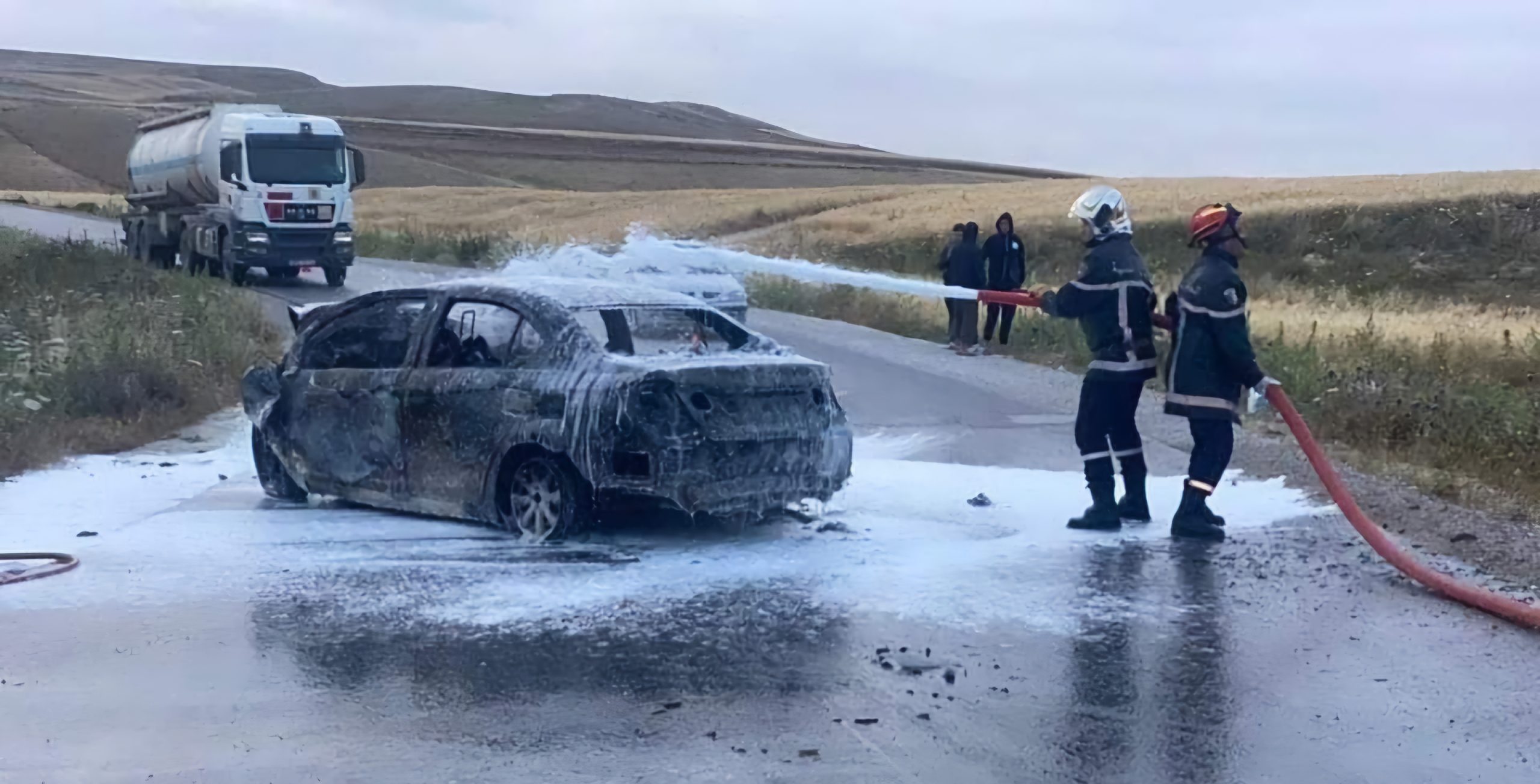 C’est un terrible drame qui s’est produit ce lundi 3 juin 2024, au niveau du CW133 reliant Ain Abid à El-Hadjadj, dans la wilaya de Constantine.Un accident de circulation impliquant un camion citerne rempli de carburant et un véhicule touristique, roulant au GPL, s’est produit aux alentours de 5h du matin. Bilan : les six occupants du véhicule touristique sont morts carbonisés.