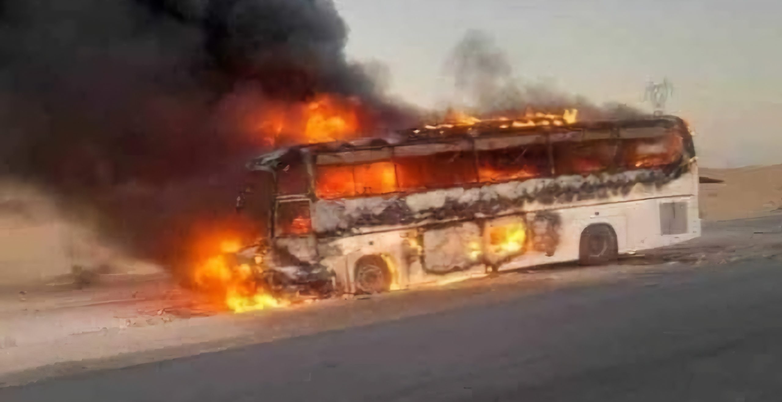 En effet et d’après la même source, le sinistre qui s’est produit à 6h14 du matin, a impliqué un bus de transport de voyageurs reliant Guelma à Hassi Messaoud et un véhicule touristique. Suite à la collision entre les deux véhicules, le bus et sous la violence du choc, a pris feu.