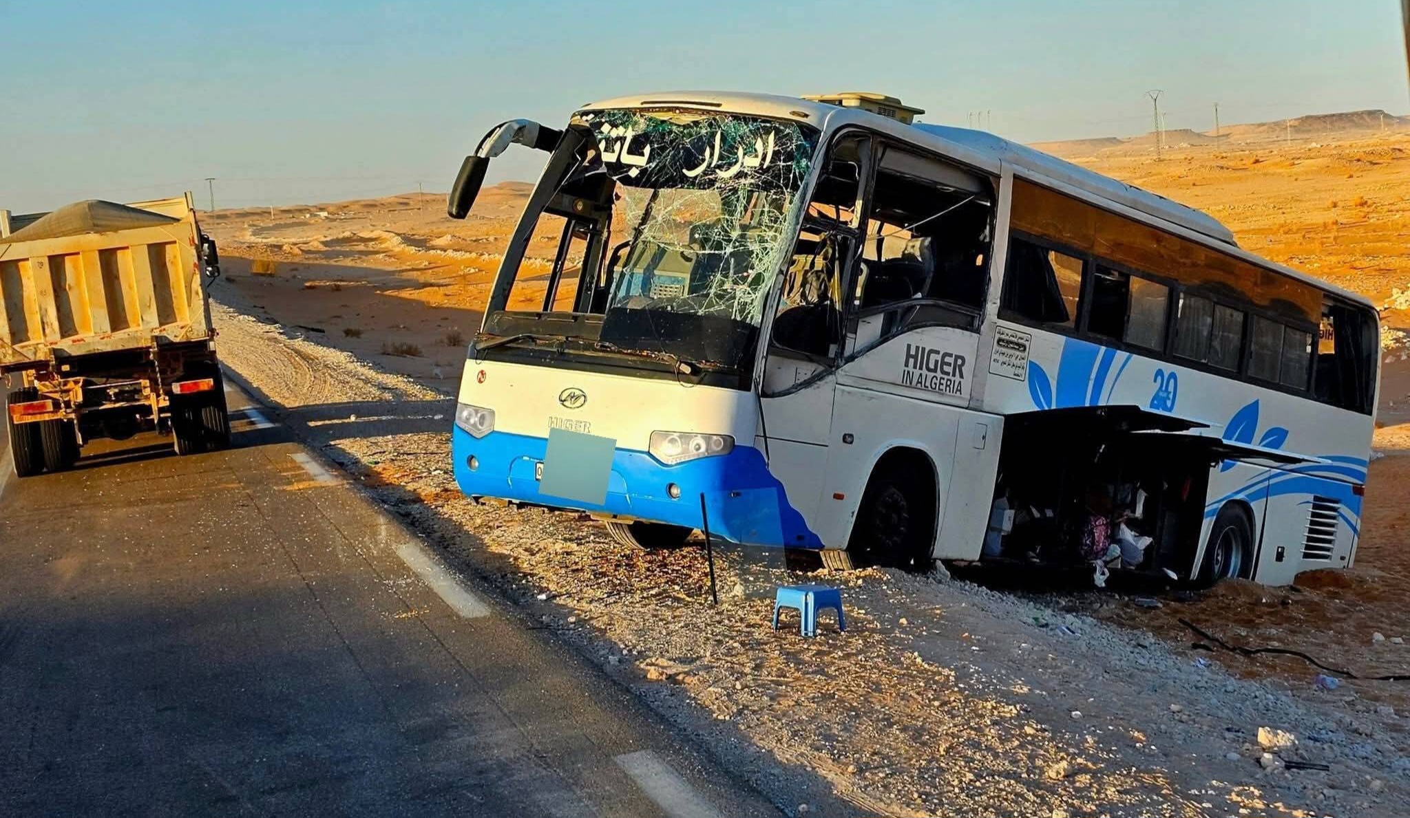 Le document explique que deux bus de transport de voyageurs assurant les liaisons entre Batna et Adrar, et entre Ain Sefra et Chlef sont entrés en collision. Bilan de l’accident : 28 blessés dont deux graves évacués à l’hôpital local.