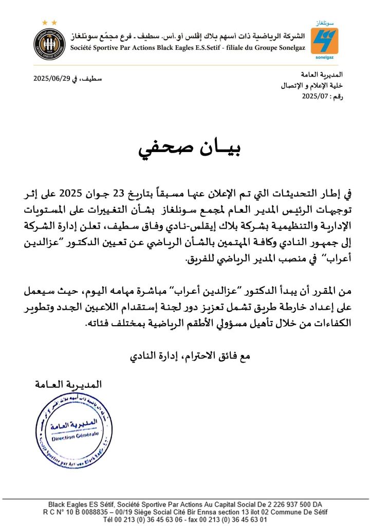 ES Sétif : Un nouveau DTS désigné