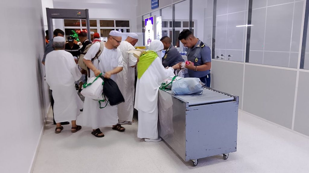 Accueillis à leur arrivée par Abdellah Abi Nouar, le wali de Ghardaïa accompagné par le P/APW de la wilaya de Ghardaïa, M. Slimane Hadj Saïd, le chef de daïra de Bounoura , des autorités sécuritaires de la wilaya de Ghardaïa et d’un cadre de la direction des affaires religieuses, ils ont été rapidement pris en charge par les structures d’accueil , notamment la police des frontières (PAF) , les Douanes, le Croissant Rouge Algérien (CRA) et les Scouts Musulmans Algériens (SMA) , dont les volontaires et bénévoles ont fait un travail magnifique d’aide notamment aux personnes âgées , en leur offrant à leur arrivée de l’eau fraîche , des chaises roulantes et en portant leurs bagages jusqu’à leur moyen de transport .