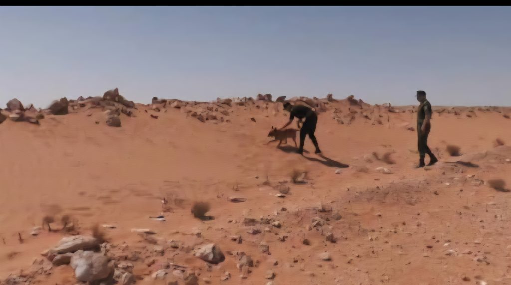 C’est alors qu’ils étaient en train de suivre sa trace en plein désert qu’ils retrouvent la moto et trois individus au comportement suspect.La fouille corporelle des trois individus et de la moto n’a rien révéler d’illicite.