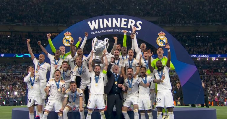 Le Real Madrid continue d’écrire l’histoire du football mondial!Carlo Ancelotti le spécialiste des grandes compétitions a encore une fois marqué de son empreinte cette finale de la ligue des champions d’Europe avec son équipe le Real Madrid ce samedi 1er Juin à Wembley face au Borussia Dortmund.
