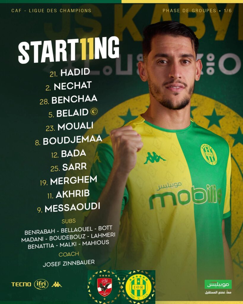 La JS Kabylie (JSK) dévoile son onze de départ pour défier Al Ahly dans un choc crucial de Ligue des Champions au Caire.