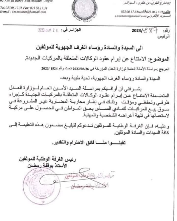 En effet et dans une correspondance adressée aux notaires, ces derniers sont exhortés de s’abstenir d’établir tout acte relatif aux transactions de vente des voitures neuves, et ce, à titre « onjoncturel, conservatoire et provisoire », est-il souligné.