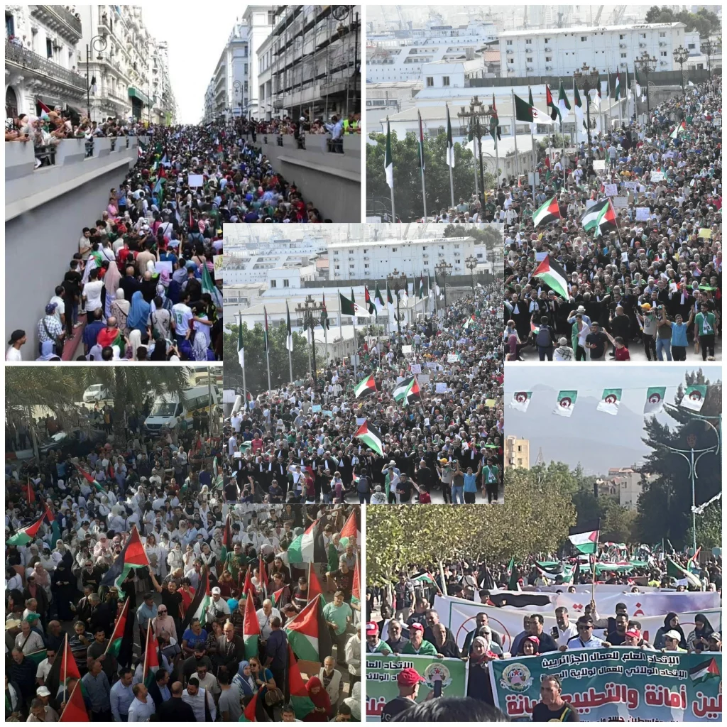 Tout au long de leur itinéraire, les foules n’ont eu de cesse de scander des slogans en faveur du peuple palestinien « Bi Eddem bi Errouh, nefdik ya falastin » ( Avec notre sang, avec notre âme, on se sacrifie pour toi ô Palestine), « Falestine Echouhada » ( La Palestine Martyr), « Palestine, nous ne t’avons pas oublié », « Gaza, la victoire ou la mort », « Solidarité avec nos frères à Gaza », « 75 ans d’occupation illégale », « Free Palestine ».