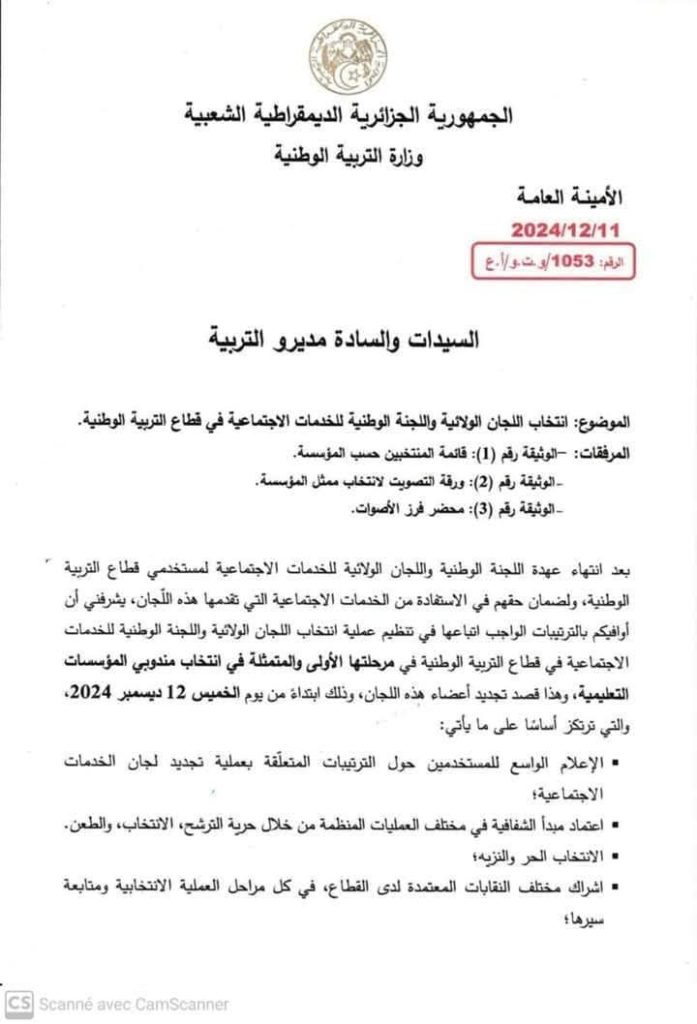 En effet, la Secrétaire général du ministère de l’éducation nationale a transmis aux directeurs de ses administrations au niveau des wilayas un document qui détaille toutes les opérations concernant ce renouvellement qui aura lieu avant le 20 janvier de l’année prochaine. Ces opérations ont commencé le 12 décembre.