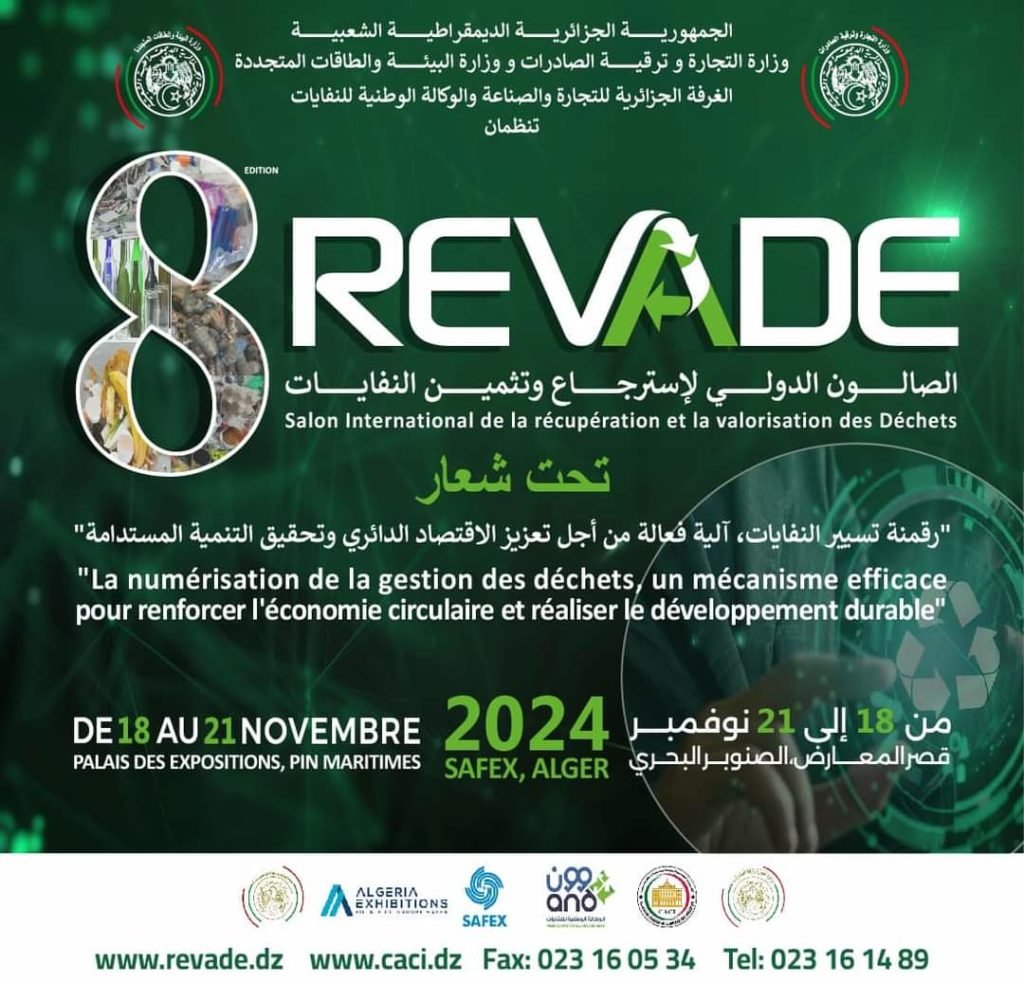 Les entreprises intéressées à participer activement peuvent dès à présent s’inscrire via le liensuivant: [https://registration.safex.dz/register]. À travers cette initiative, la CACI œuvre pour promouvoir une économie plus respectueuse de l’environnement, tout en soutenant la croissance des secteurs du recyclage et de la gestion durable des déchets, qui sont au cœur de la transition énergétique et écologique du pays.