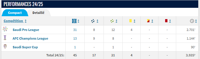 Ainsi, Le capitaine de l’équipe nationale algérienne a brillé par son rendement exceptionnel : 31 matchs de championnat, 8 buts et 12 passes décisives, mais surtout une campagne continentale impressionnante avec 9 buts et 8 passes en 13 rencontres.