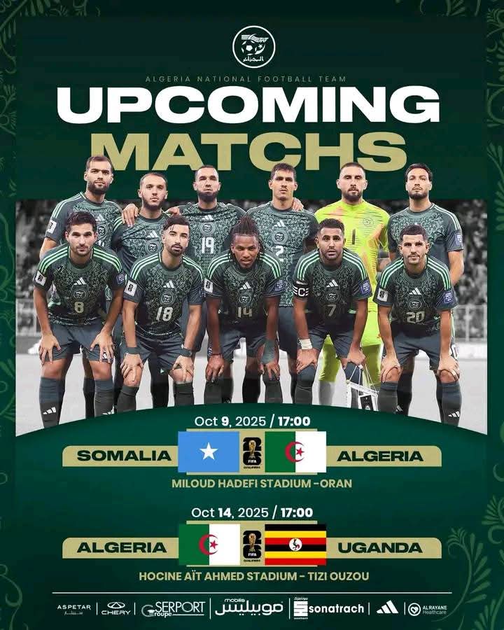 C’est désormais officiel et confirmé, la Somalie a décidé de reçevoir l’Algérie pour le compte de la 9e journée des éliminatoires à la prochaine Coupe du Monde 2026 à Oran au stade Miloud Hadefi.