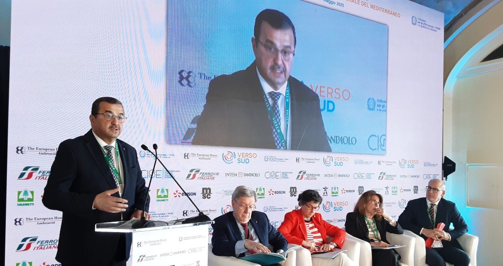 Dans le cadre de sa participation aux travaux de la 4ᵉ édition du Forum international « Vers le Sud », organisé sous le thème « La stratégie européenne pour une nouvelle ère géopolitique, économique et socioculturelle en Méditerranée », les 16 et 17 mai 2025 à Sorrente (Italie), sous le patronage du gouvernement italien, le ministre d’État, ministre de l’Énergie et des Mines et des Énergies Renouvelables, M. Mohamed Arkab, a pris part ce vendredi à une session de haut niveau intitulée : « Le rôle central de la Méditerranée dans la transition énergétique mondiale : réalisations et stratégies ».