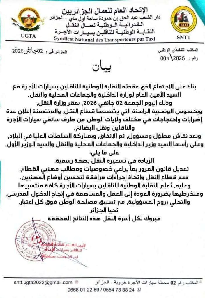 La rencontre, organisée au siège du ministère des Transports, s’inscrit dans un contexte marqué par des grèves et des mouvements de protestation observés dans plusieurs wilayas du pays, impliquant chauffeurs de taxi et transporteurs de marchandises. Ces actions faisaient suite à la hausse des prix du carburant et à l’adoption du nouveau Code de la route, vivement contesté par les professionnels du secteur.