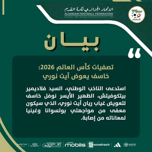 L’absence d’Aït Nouri s’annonce particulièrement préjudiciable dans un contexte où l’Algérie dispute deux rencontres déterminantes dans les éliminatoires pour la Coupe du Monde 2026.